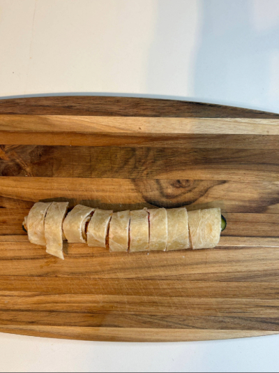 - Don’t overfill—this helps keep the rolls neat and easy to slice